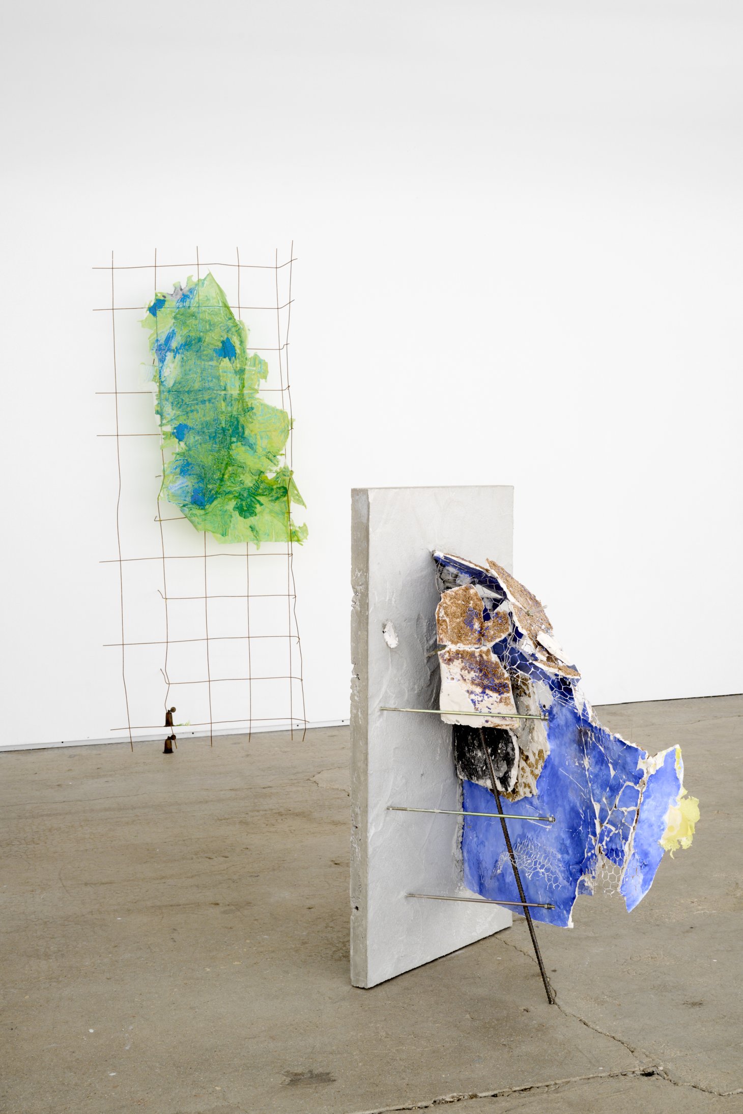 Elisa Bertin, Sans cause 2, 2022. Béton, plâtre, sable, jouets en plastique fondus, pigments, matériaux divers. Environ 120x85x90cm. Crédit photo : Pierre Antoine