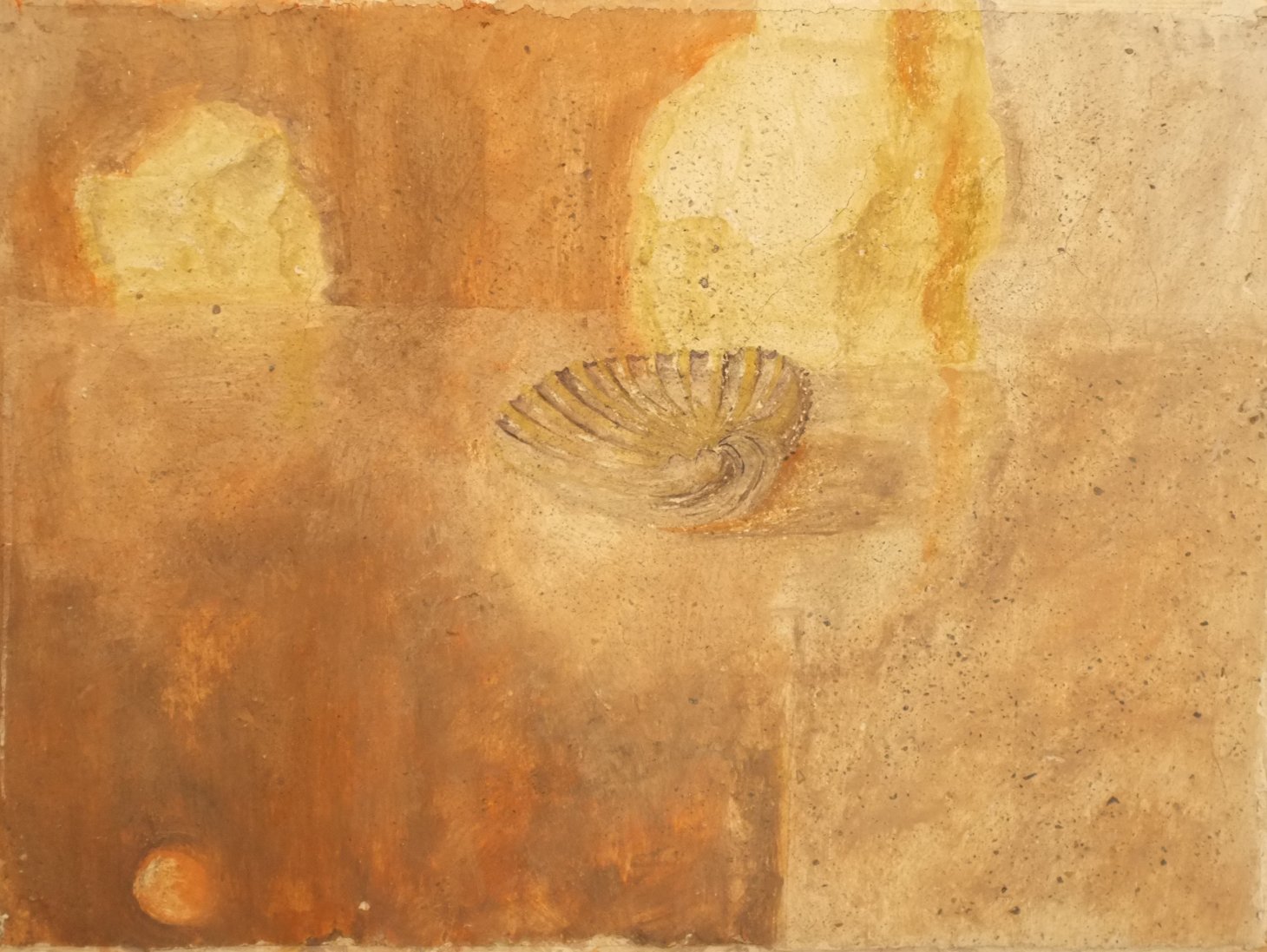 Elisa Bertin, Foreshore, 2021. Mortier de chaux, pigments, bois. 85x63cm