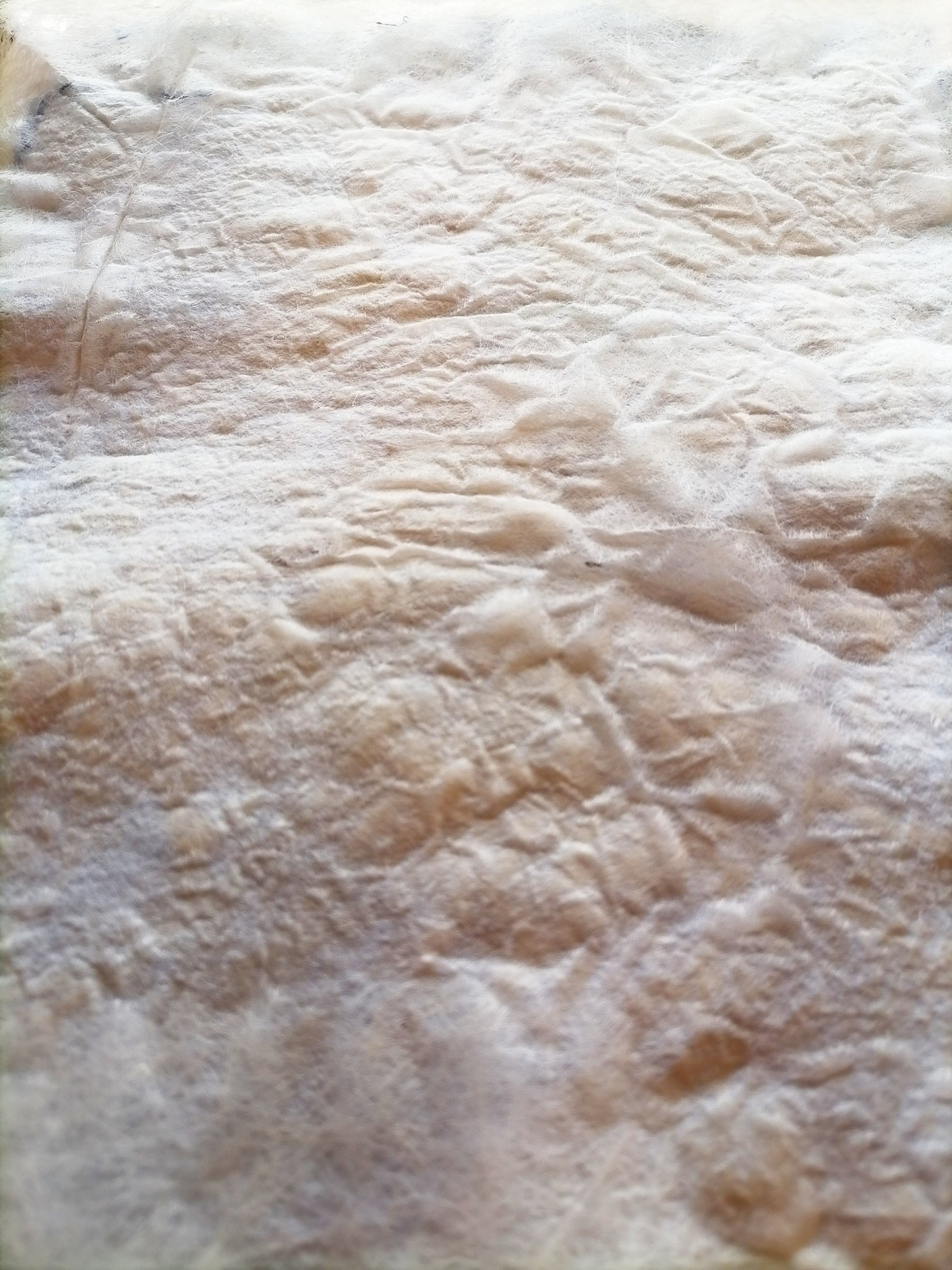 Il importe à Fleur Leclère de revenir à des gestes primaires, dessiner, fabriquer du papier, teindre, broder… Ils lui permettent à la fois d’être dans une spontanéité de création, tout en ne cessant de jouer avec leurs propriétés et les limites de ces dernières. Fleur accorde de l’importance à la qualité plastique de son travail. Elle importe pour transcrire les observations sensibles qu’elle tente de partager. Fleur ne sépare pas les intentions du travail plastique à l’œuvre. Elle réalise des feuilles à partir de différents matériaux : papiers de récupération, épaisseurs de masques chirurgicaux, végétaux, fruits… Elle explore des aspects de surface, créant des illusions de profondeur, pendant les différentes étapes de fabrication. Une fois sec il lui arrive de les broder. Dernièrement Fleur Leclère travaille des aspects de creux et de reliefs sur ces papiers, par la broderie. Ces papiers « encodés », dans l’idée des plaques de terre en écriture cunéiforme, peuvent évoquer le braille et les cartons de métier Jacquard.