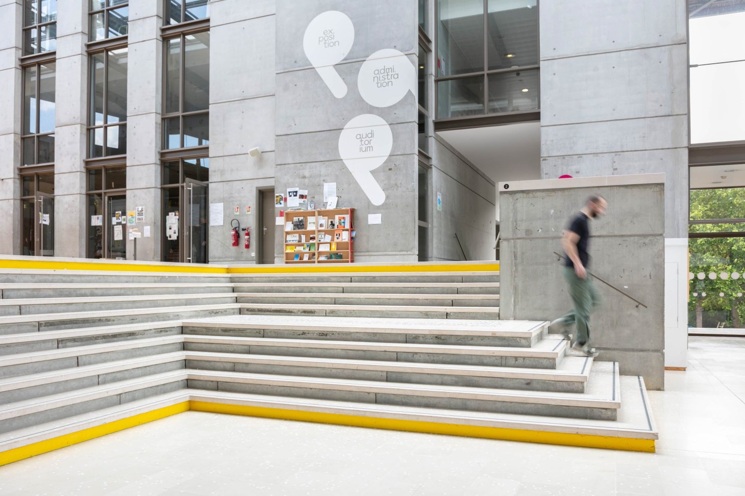 Salomé Coste-Blochet, COURANT TRAVERSANT , 2024, installation sonore in situ, hall de l’ésam, (micro, anémomètre, haut parleurs) dimensions variables